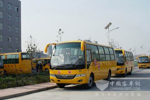 2011年11月24日,在少林汽车营销中心的发车区,一批销往吉林省农安县的橙黄色47座专用小学生校车整装待发,炫丽的身影吸引了不少前来提车的客户。