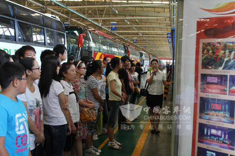 “原来客车是这么造出来的!”在走进“宇通价值探索之旅”后有同学不禁如此感叹!百名同学乘坐宇通客车先后参观了承装车间、整车电泳车间和腾飞广场展车区,参观过程中,工作人员给同学们讲述了宇通的发展历程。一排排厂房整齐的排列,规划得十分有序。厂房内每条流水线都在有条不紊地运作,工人们在每一个工作岗位上辛勤的劳作。这一切让首次近距离参观整个客车生产线的同学们不由得连声赞叹:很漂亮,很大气。”