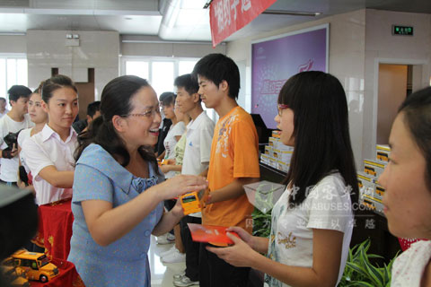 宇通公司领导给学生发放助学金及纪念品