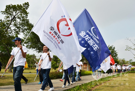 开幕式上,李东东会长向大金龙授予了“爱心企业”牌匾。大金龙轻客事业部副总监杨智元表示感谢,他提出,对“绿色出行”、“幸福”的追求,促成了金龙客车与本次徒步大会的合作,相信会有更多的人加入绿色出行的行列,幸福的足迹将在越来越多的地方蔓延。