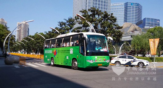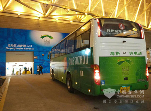 Duang~海格纯电动大巴正从比赛场馆开出!