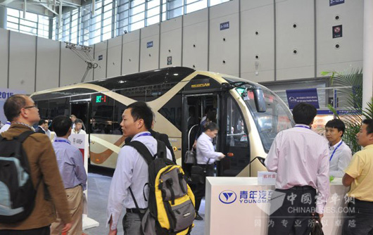 青年汽车展示自主研发的最新电动公交车JNP6123BEV