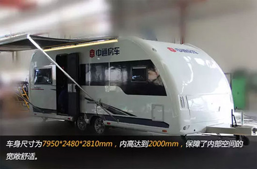 该车主要技术参数为:长795CM,宽248CM,高281CM,同时设计内高200CM,保障内部空间的宽敞舒适。使用三明治复合车身,优势:重量轻、隔音降噪好、保温好、承重能力强、维修性高。采用专业拖挂房车底盘,中间双轴设计,承重能力强,行驶性能稳定,便于主车牵引式驱动行驶。