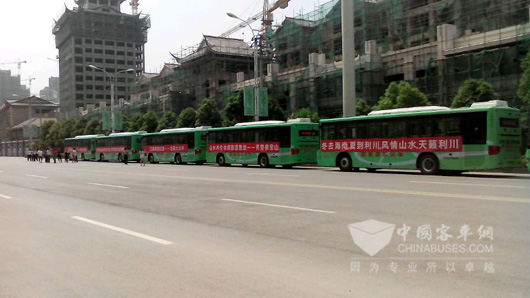 几天以前,在苏州通往湖北恩施土家族自治州的沪蓉、沪渝高速公路上,出现了一道醒目的风景线:十几台崭新的公交车排成长龙,浩浩荡荡地行驶。车身侧面还挂有醒目的红色横幅,上面写有“中国优秀旅游城市——利川欢迎您”等字样。这批车共19台,是湖北恩施利川县采购的首批新能源气电混合动力公交,车身长度10米5,全部来自苏州金龙海格客车。