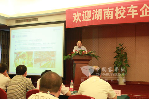 随后江淮底盘营销技术人员向各位代表介绍了江淮校运通系列底盘的产品型谱、特点、适应车型等,并重点介绍了所搭载的我公司自产发动机,以及该发动机与同类型发动机的优势。一汽解放锡柴发动机公司的技术专家就锡柴国Ⅳ、国Ⅴ发动机产品进行介绍。随后会议举行了“江淮校车底盘欢乐购”的签约仪式,邀请了三家客户代表共同签署了协议。最后,湖南省校车企业协会会长、长沙梅花客车公司总经理张君伟做重要发言,他表示江淮底盘也是湖南省校车企业协会的理事单位,多年来对湖南校车服务市场做出了重要的贡献,此次活动的顺利举行,对各方都是一个共赢的结果,希望后期大家能多加交流,实现更大的跨越。