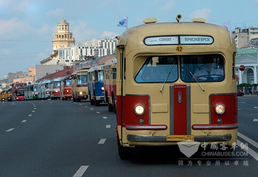 此次共有14辆珍贵且极具历史意义的老式公交车参与了在莫斯科市中心的环线游行。游行路线途经特维尔大街、大卢比扬卡大街及斯列金卡街,最终所有老式公交车都汇集在老式汽车展览会上。