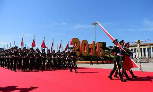 2015年9月3日,上午10点,伴随着56门礼炮鸣响的70声炮响,纪念抗日战争暨世界反法西斯战争胜利70周年阅兵盛典在世界瞩目中拉开帷幕。