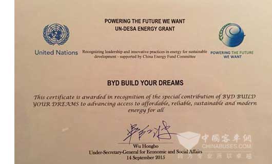 潘基文亲自授予比亚迪“联合国能源特别奖”
