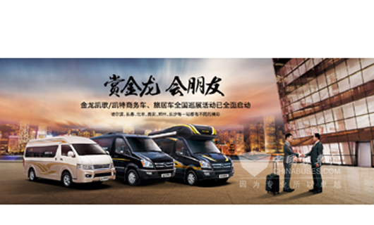 金秋时节,大金龙邀您“赏金龙·会朋友”。2015年9月15日,金龙凯歌/凯特商务车、旅居车全国巡展在哈尔滨盛大启动。据悉,本次巡展将自北向南,纵贯六座城市。首站活动地点位于哈尔滨繁华商圈,现场热闹非凡,吸引了大批旅游公司、个体私营企业主、商务人士及租赁行业客户观展。