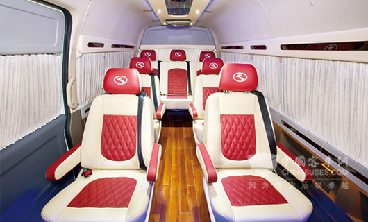 豪华的内饰灯光衬托出金龙商务车的高端品位