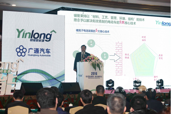 2016年3月18日,由中国公路学会客车行业分会、珠海银隆新能源有限公司、珠海广通汽车有限公司联合主办的“2016银隆新能源新品发布会暨技术研讨会”于珠海度假村酒店举行。大会以“论道钛酸锂 探索新模式”为主题,聚焦当今国际公认的最具潜力的钛酸锂电池技术,探讨新能源汽车商业模式创新和未来趋势,致力于推动中国新能源汽车产业新一轮跨越式发展。