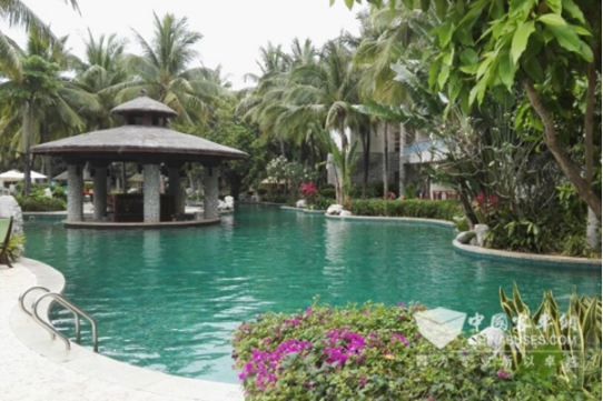 看,在距离三亚国际会议中心四公里以内的地方,几乎随处可见这样的美景,绿水、椰林,处处都可成为一种欣赏。