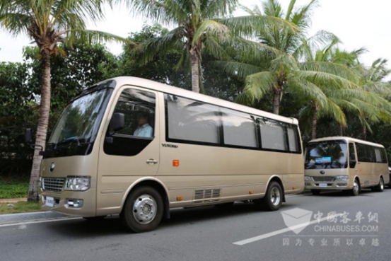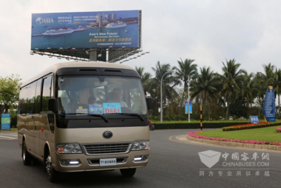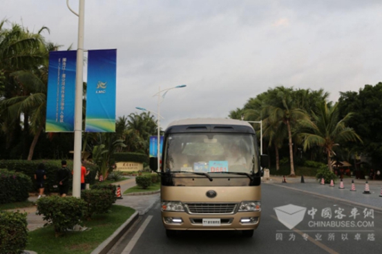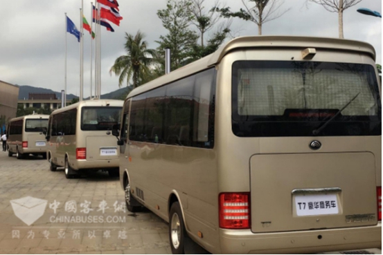 12辆宇通T7为澜湄会议提供交通运输服务,它们还同时服务于正在召开的博鳌亚洲论坛,高端会议服务用车成了它们的代名词。