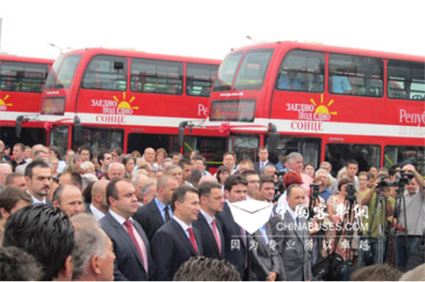 2011年9月6日恰逢马其顿共和国成立20周年,马其顿首都斯科普里市举行盛大的宇通公交车交接仪式。马其顿总理格鲁埃夫斯基、国家财政部长和交通部长等政府高级官员悉数到场,中国驻马大使、政务参赞等也应邀出席。