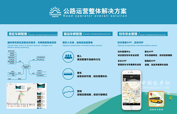为了满足国内日益增长的校车市场的需求,海格客车量身打造“创程智慧校车运营管理系统”。该款系统是目前国内先进的校车远程管理监控系统之一,可以通过前端车载终端实时对驾驶员、学生、车辆的行为活动进行监控管理和数据统计;同时,后端服务平台可以向学生家长、学校、运营商和监管部门开放,随时对校车运营状况进行监控和干预,降低安全隐患。