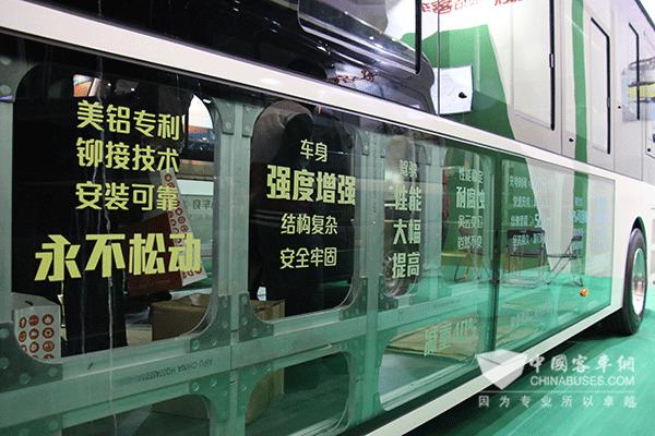 据介绍,苏州金龙海格客车的展位主打铝元素、科技感、新能源三大特点。全场最吸睛的莫过于海格全铝纯电动社区巴士,“全铝车身+新能源”将节能环保进行到底。此外,车身采用“通透”设计,展车左右侧围、后围大面积玻璃透视并张贴新能源及铝车身的特点,让苏州金龙核心技术“看得见”“摸得着”。
