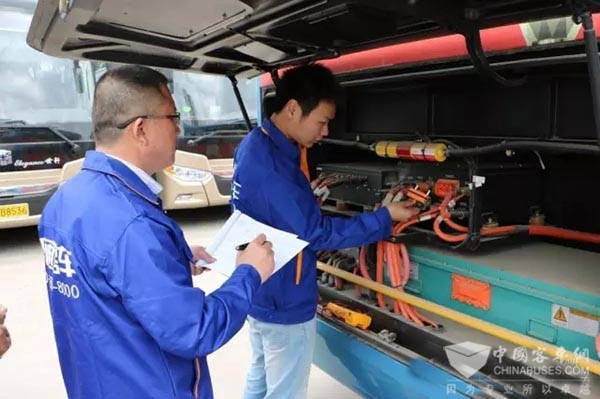 中通客车服务团队联合配件供应商对车辆进行安全排查