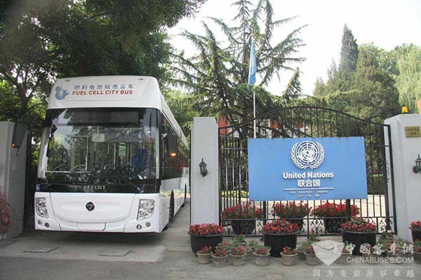 福田欧辉氢燃料电池客车亮相北京联合国大楼
