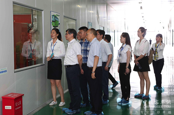参观团深入生产车间实地了解生产情况 参观期间,大家还一同登上环保“铛铛车”,对其舒适的乘坐体验予以赞许。