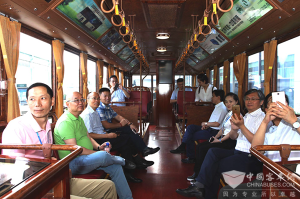 参观团领导们试乘环保“铛铛车”