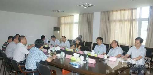 在会客室,安源客车负责人向客人介绍了安源客车的发展历史、管理体系、市场营销、产业布局、发展规划等情况。