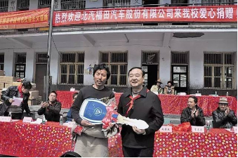 2013年3月12日,福田汽车爱心车队跋涉两千多公里,将爱心物资从北京运到到四川甘孜藏族自治区康定县的贡嘎山中心学校。车队不仅满载着福田汽车员工捐赠价值十几万元的爱心物资,更承载着福田汽车对少数民族地区孩子的助学计划,承载着贡嘎山中心学校一百六十多名贫困儿童继续读书的希望。福田汽车为莘莘学子们搭建了实现梦想的舞台,尽显企业的社会责任感。