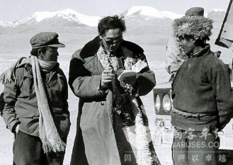 唐召明(中)独闯藏北无人区时在途中采访