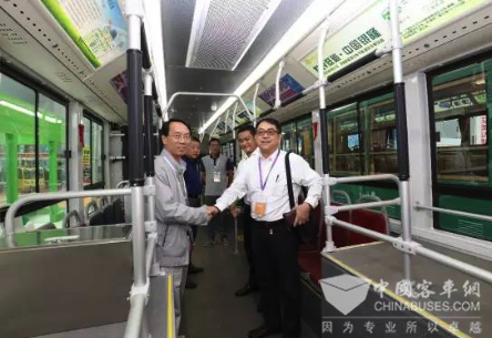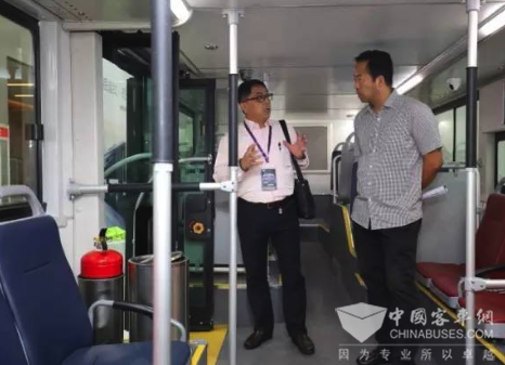 乌鲁木齐BRT董事长杨红军听取银隆新能源纯电动客车的性能介绍