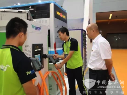 李长清书记与奎屯公交集团尚军董事长现场观看充电桩设备操作演示
