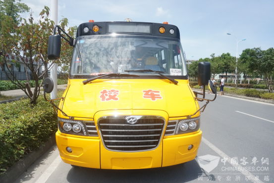 走进海格停车场,43辆崭新的海格校车组成的黄色方阵整装待发,格外醒目。大鼻子前脸、卡通校车图案、清新内饰配置,萌动炫酷;前后车顶警示灯、停车指示臂等校车专属元素配以红色“阎良校车”字样,给人以安全感,更让人对有校车接送的阎良学生心生羡慕。