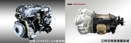 搭载江铃JX493ZLQ4发动机和五档机械式变速箱。