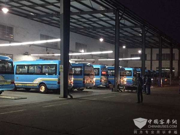 夜晚,检测员工加班加点,夜幕降临熄灭不了员工高涨的热情,不断地调试车辆保证每辆车都以最好的状态迎接市民的检阅。交付的每一台车辆都凝聚了公司上下的汗水和心血,功勋章属于每一个晶马人!