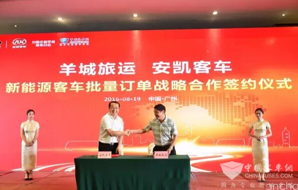 2016年8月19日,与里约奥运上中国游泳运动员傅园慧的“洪荒之力”遥相呼应,安凯客车在“安凯美丽中国行”第四季的活动现场与羊城旅运公司签订了新能源客车批量采购合同,再现其在新能源汽车市场豪迈洒脱的“洪荒之力”。