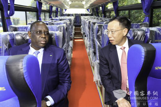 苏州金龙总经理黄书平陪同塞内加尔总统萨勒体验海格客车