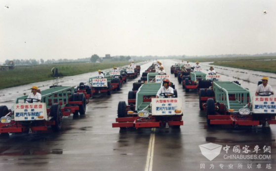 此后,1989年,合肥淝河汽车制造厂又参加由中汽总公司组织的客车专用底盘的联合设计,开发出了以J3、F3为代表的大型客车专用底盘,结束了国内大型客车无专用底盘的历史,也解决了国内客车用货车底盘代用的问题,这些也为安凯生产客车打下了基础。