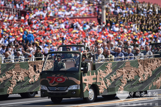 阅兵式上老兵乘坐安凯宝斯通敞篷车受阅