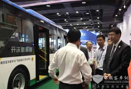 上午12时,中国科学技术部副部长阴和俊参观南京金龙展示样车,在听取桂通动力董事长杨彬的介绍后阴部长表示,氢混燃气取代化石燃料作用于汽车上,这是我国在新能源汽车研发工作上的一项重大突破。阴部长要求,我们一定要加快脚步,稳固技术运用,全面推广此款产品,让好的技术服务到更多的百姓身边。