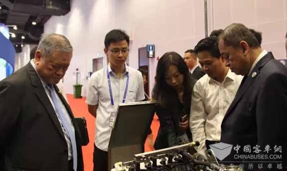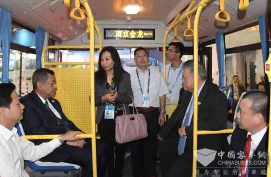 下午4时许,文莱国能源与工业部部长亚斯敏、首相府部长兼外交与贸易部第二部长林玉成莅临南京金龙展位,参观并试乘氢混动力客车,部长与车辆介绍人员深入交谈了解后表示,欢迎南京金龙氢混燃气电动客车开进文莱,造福文莱百姓,更欢迎南京金龙与桂通动力作客文莱,与文莱新能源汽车事业共同发展、创新。