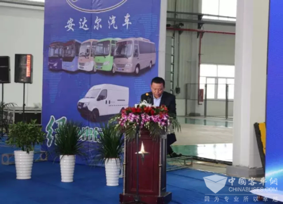 接着,跃迪集团董事长吕洪涛致辞:欢迎各位领导、行业同仁及媒体嘉宾共同见证安达尔新能源汽车下线这一重要时刻,同时表示今后将继续加大科研投放力度,创新生产更智能更环保更多样化的系列新能源客车,以顺应时代发展趋势,为城市公共交通事业的发展做出更大的贡献。