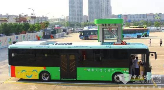 此外, 2016年9月22日,在中国宁波,第二批超级电容储能式现代电车在306路正式开跑。这条线路是现有公交线路改建而来,由公交江北洪塘中路站始发,终点站为汽车东站,途径江北海曙江东三个区域,除了起始站,在谢家和外滩大桥西站均建造了充电站,充电站高3米多,呈现倒“L”型,看上去高端大气。