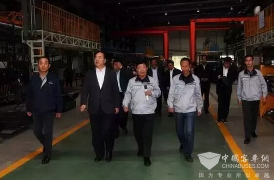 2016年10月10日下午,市委书记刘兴伟一行来到曙光汽车集团黄海新能源基地调研,在曙光汽车集团董事长李进巅亲自陪同下,先后深入新能源基地崭新的“焊装、涂装、总装”车间详细参观了解生产运行情况。并参观了黄海新能源基地刚刚生产完成的崭新的135台丹东黄海气电混合动力新能源公交,以及包含黄海客车、校车、皮卡、瑞途、特种车等在内的黄海全系列产品,特别是听到黄海皮卡刚刚取得的中国移动千台产品大单情况汇报后,对曙光汽车集团的经营发展给予了极大的鼓励。