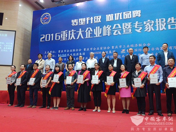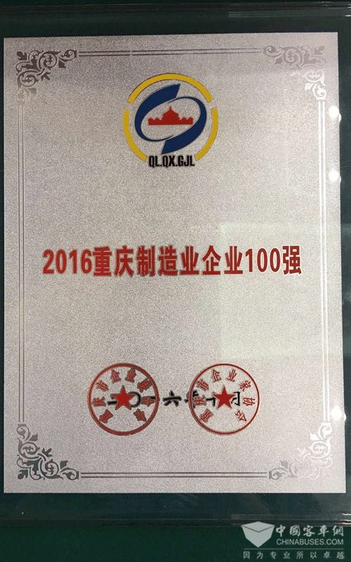 恒通客车荣膺“2016重庆制造业100强企业奖”称号