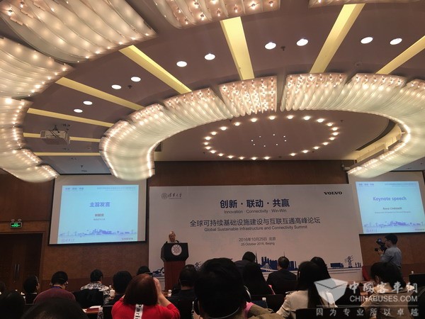 2016年10月25日-由清华大学与沃尔沃集团共同举办的全球可持续基础设施建设与互联互通高峰论坛在清华大学举行。近120位来自于产、学、研各界的行业代表及媒体嘉宾出席了论坛活动,共同探讨基础设施的可持续发展路径,促进全球的基础设施建设的互联互通。清华大学校务委员会副主任、全国人大常委、全国人大环资委副主任袁驷出席了开幕式并致辞。