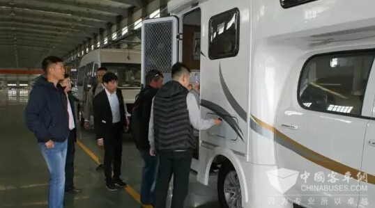 随后参观考察了安源客车专为澳州市场量身打造的PK6105高档豪华旅游客车、各型房车、纯电动城市公交客车等产品。
