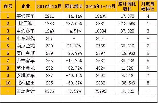 此次公交客车月度销量排名,最大的变化是中车时代电动持续发力排名第4。具体排名如下: