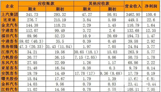 (注:上表括号中的数据为新能源补贴款数额,未标注括号的则为企业没有单独注明新能源补贴款数额为多少。)