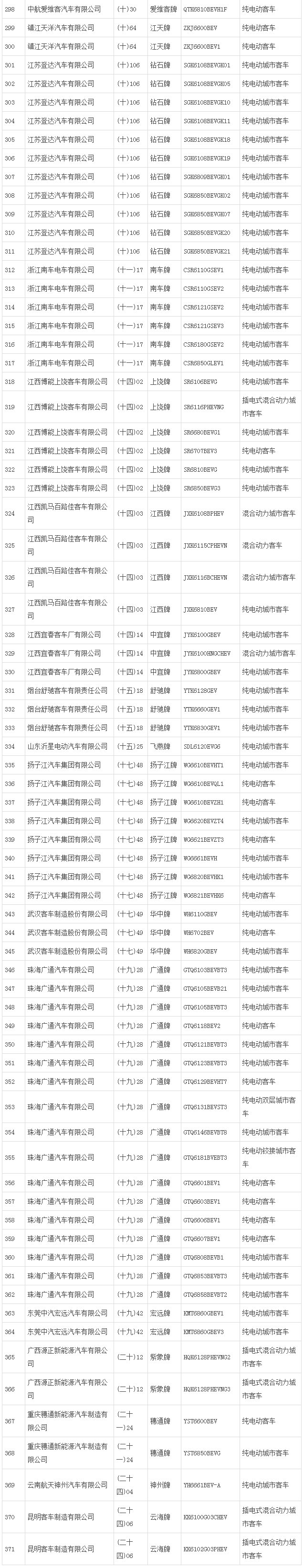 2016年12月2日,XINGKONG.COM从工业和信息化部网站获悉,《新能源汽车推广应用推荐车型目录》(第4批)正式发布, 共有678款新能源汽车入选,其中,新能源客车371款。入选的客车企业诸多,如宇通、金龙、金旅、安凯、比亚迪、北汽福田、南京金龙、申龙、亚星等。具体如下: