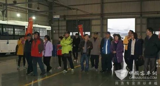 客人在公司副总经理张伟华的陪同下,参观了总装车间生产线,了解安源客车生产制作流程和工艺。