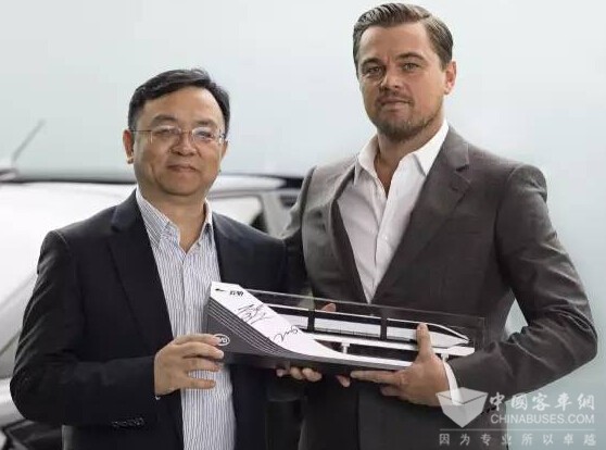 2016年12月16日,比亚迪公司宣布:联合国“和平大使”、奥斯卡奖得主莱昂纳多•迪卡普里奥(Leonardo DiCaprio)成为比亚迪在中国地区的新能源车代言人。比亚迪是世界上最大的新能源汽车制造商之一,在2015年占有11%的全球市场。大力发展新能源汽车是比亚迪“为地球降温1℃”而做的不懈努力之一。致力于打造“零排放能源生态系统”,比亚迪通过发展和推广可再生能源的生产、储存和使用,旨在改变人们的能源使用方式,提高公众对气候变化的重视,推动环保事业的发展。
