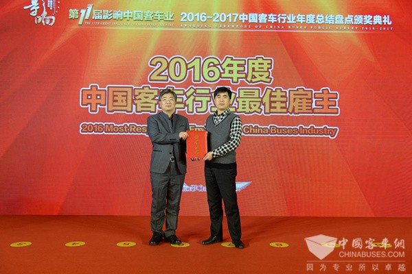 所有奖项中,最受关注的无疑就是“2016年度客车行业最佳雇主”了。结果公布,中通客车以最高票的成绩成功拿下。这是继在2013、2015年度的评选中获得此桂冠后,中通客车再度“加冕”。三度荣获此桂冠,是对中通客车近些年,尤其是2016年成绩的认可。